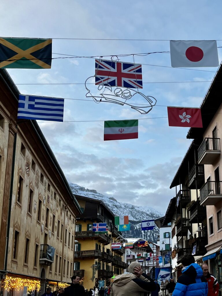 Corso Italia in versione olimpica: musica, energia e persone da tanti Paesi. L'atmosfera è allegra e festosa.