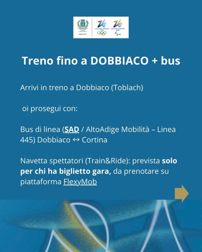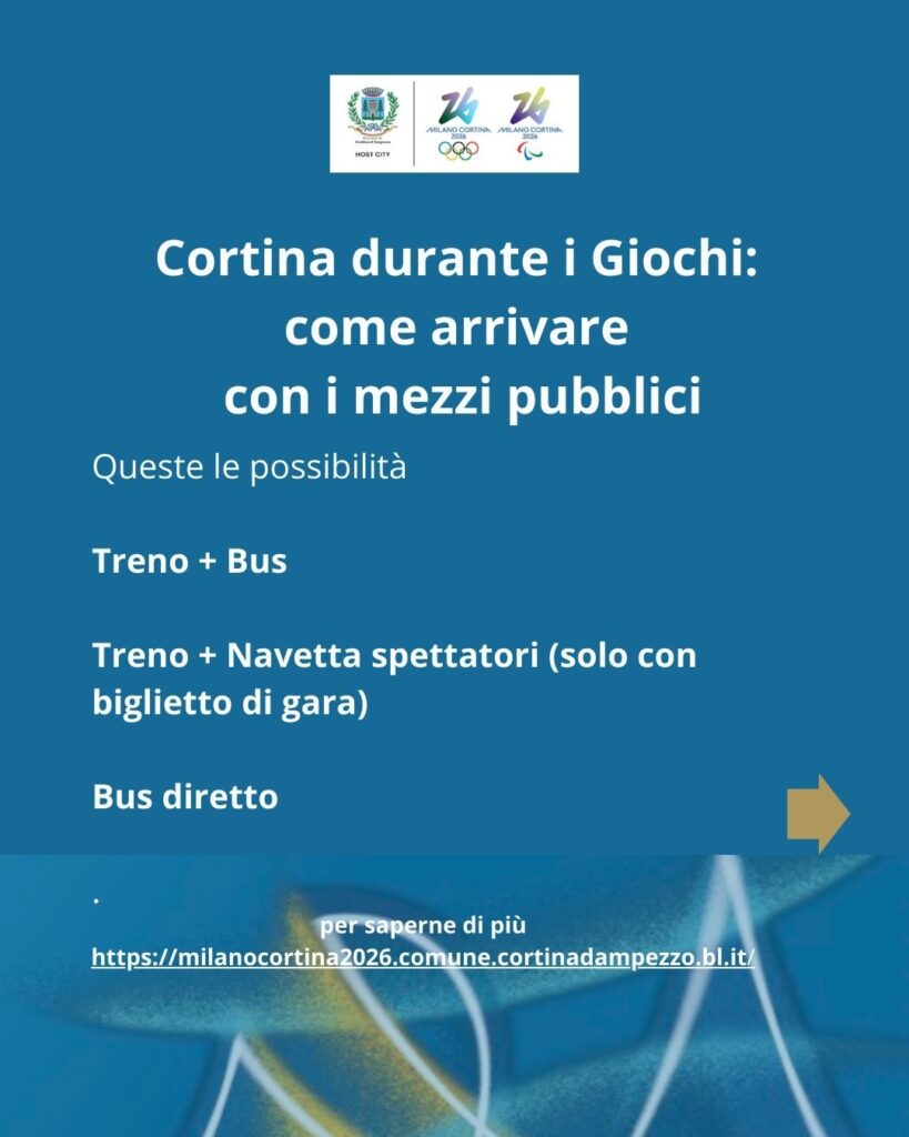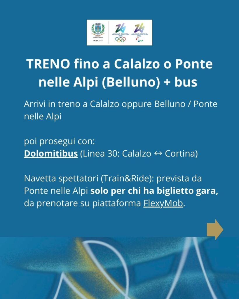 Durante i Giochi Olimpici puoi arrivare a Cortina con i mezzi pubblici: treno + bus o solo bus. Qui i link per arrivare facilmente.