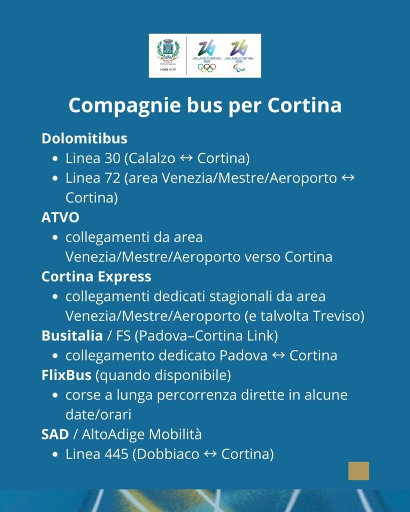 Durante i Giochi: come arrivare a Cortina con il trasporto pubblico